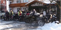 Was ADAC und der DEHOGA Bayern seit 2010 gemeinsam anbieten, die Qualitätsoffensive für Motorradfahrer – das Qualitätssiegel „Motorradfreundlicher Hotel-und Gastronomiebetrieb“, wird seit Jahren im Landgasthof Koller in Bubach a. d. Naab schon von vielen Bikern gelebt. In der Kreisstelle Schwandorf wird die Bikerfreundlichkeit im Allgemeinen großgeschrieben, da viele Betriebe die motorradfreundliche Zertifizierung schon einige Zeit besitzen. Seit 2008 kommen Sie – die Hessen. In Person von den "Russenfahrern" Eddy, Karl-Otto, Martin, Andreas und Konrad alias Wheelie-Konni kommen die Mitglieder vom Auto- und Motorradclub Grünberg im ADAC e.V. (Lkr. Gießen) als Stammgäste zu Wolfgang Pirzer, selbst begeisterter Biker, Wirt des Landgasthofs Koller und Schriftführer der Kreisstelle Schwandorf. Die Garage des Landgasthofes ist seither als "Schrauberzentrale" heiß begehrt. Schon komplette Motorenwechsel wurden dort durchgeführt. Wie schon in den vergangenen Jahren fuhr die Gruppe wieder mit ihren Motorradgespannen zum größten Motorrad-Wintertreffen der Welt, dem Elefantentreffen, im Talkessel bei Solla im Bayerischen Wald. |